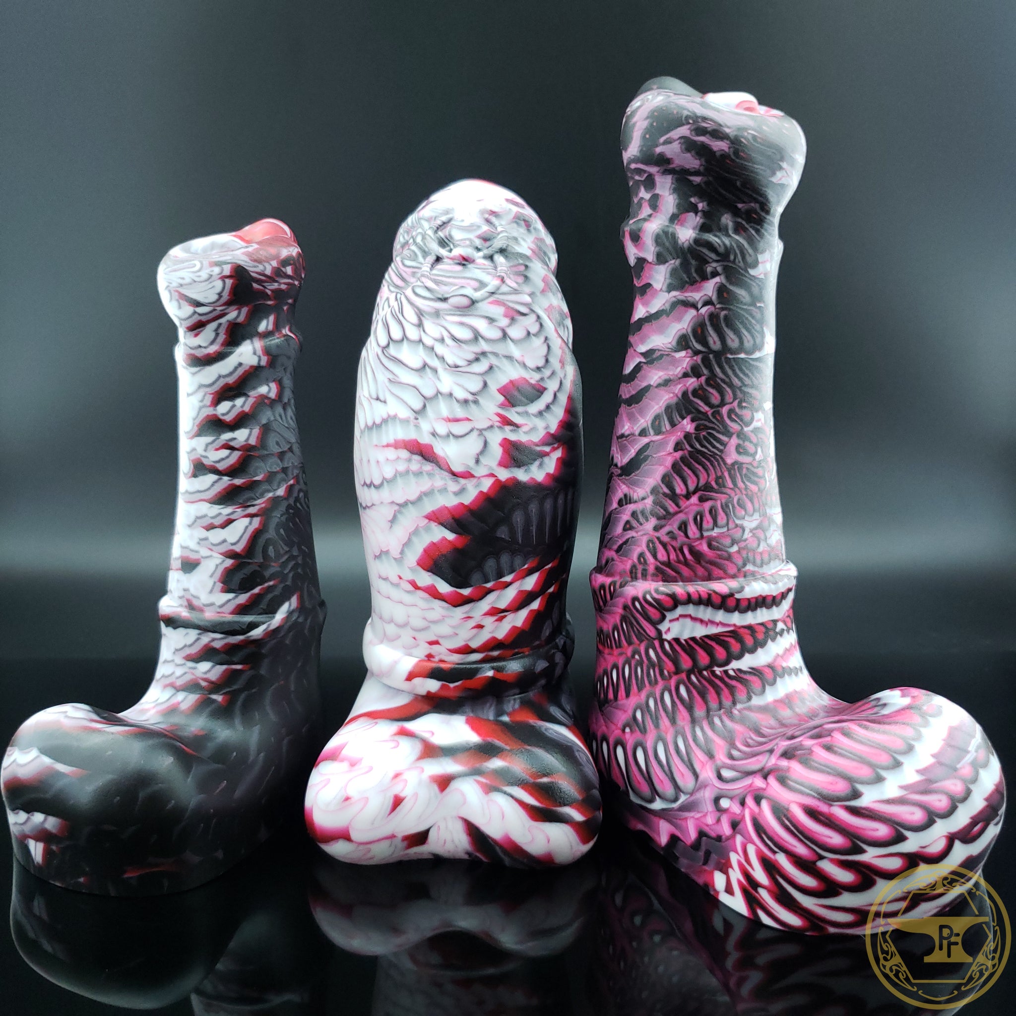 The Dungeons and Dongs series of toys are made using body safe 100% platinum cure silicone. Each is hand crafted as a parody representation of a high fantasy creature or character and then poured one at a time by a small shop of artists.